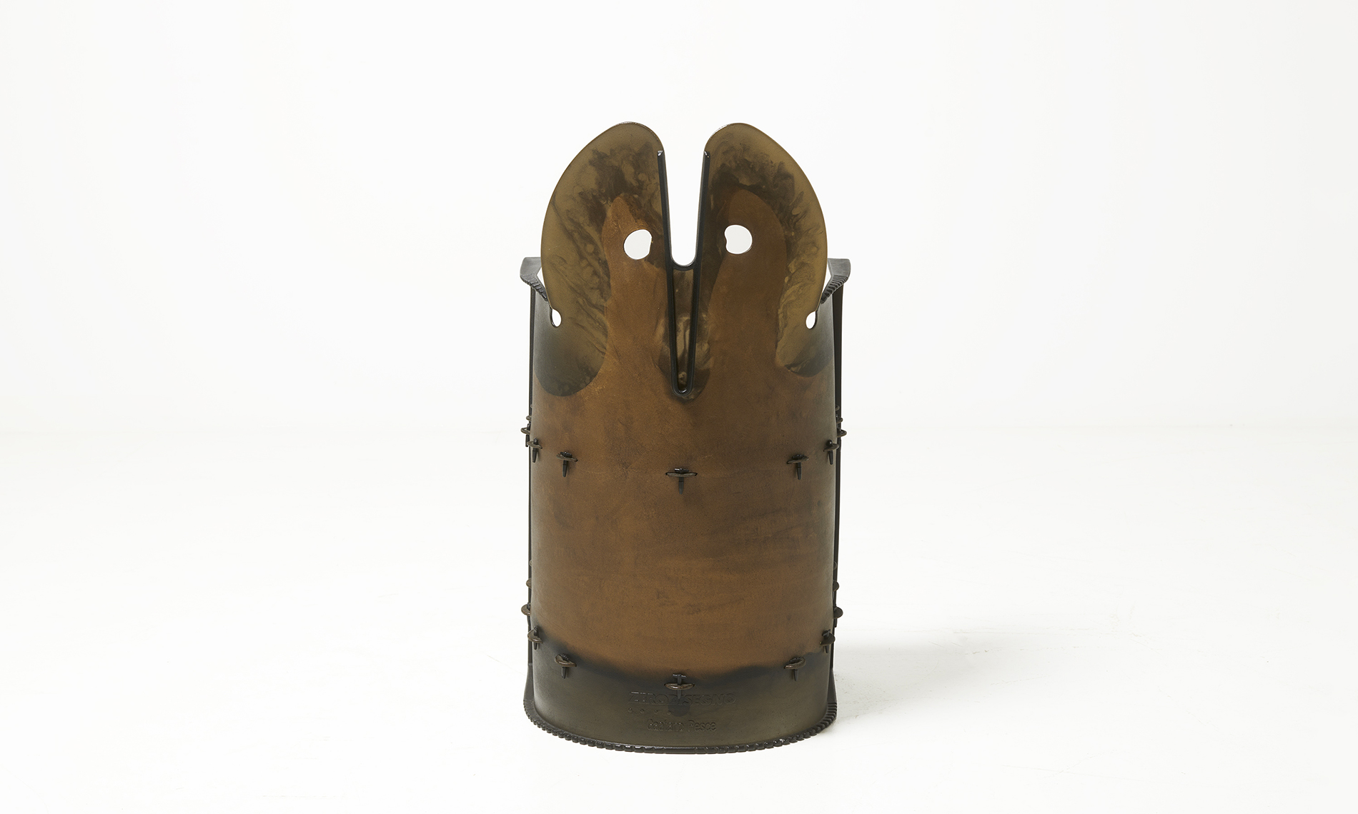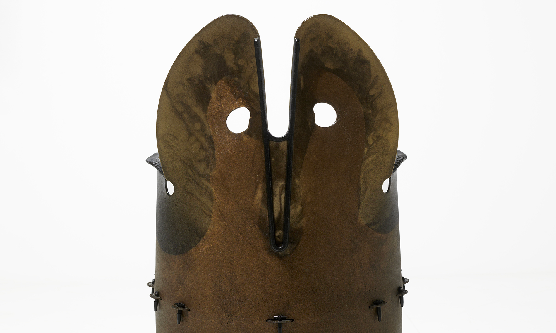 Polyurethane resin and molded plastic, tinted brown and black.